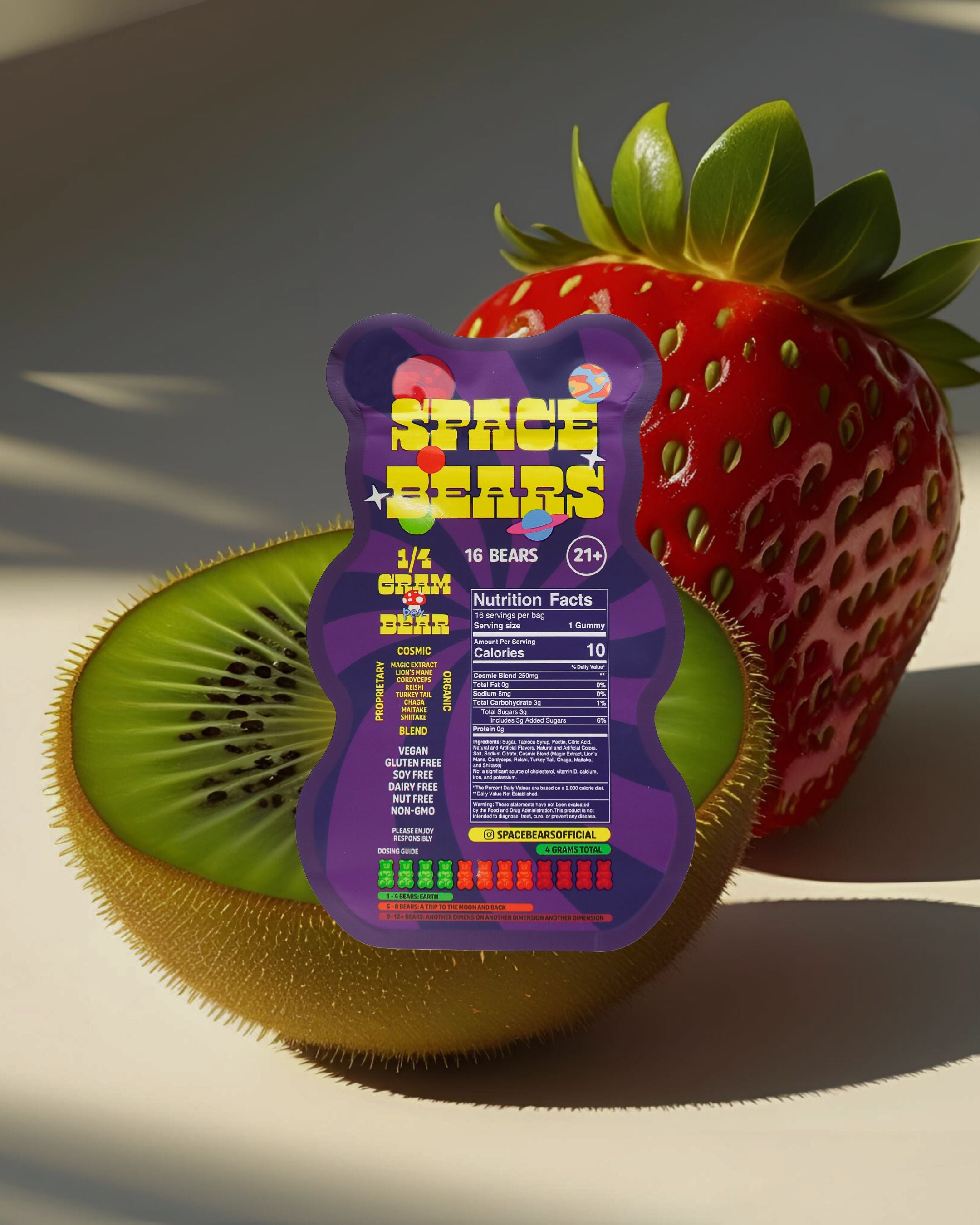 Each Space Bear gummy delivers a clean, clear, and smooth lift—designed to deepen presence, spark connection, and elevate your everyday. Powered by sacred mushrooms and cosmic flavor, this isn’t just a gummy—it’s your ticket to higher vibes.